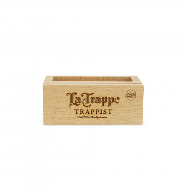 Geen rondslingerende bierviltjes meer met deze mooie biervilthouder. De houten houder is speciaal ontworpen voor bierviltjes van La Trappe. Deze biervilthouder heeft de volgende afmetingen: 11 cm lang, 6 cm breed, 4 cm hoog. Het is gemaakt van lichtkleurig hout en is voorzien van een La Trappe gravering.